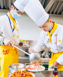 主要系统学习川菜、粤菜、湘菜等八大菜系的经典名菜、地方特色菜,都市流行菜、创新菜以及中式流行面点、各流派小吃、火锅等。